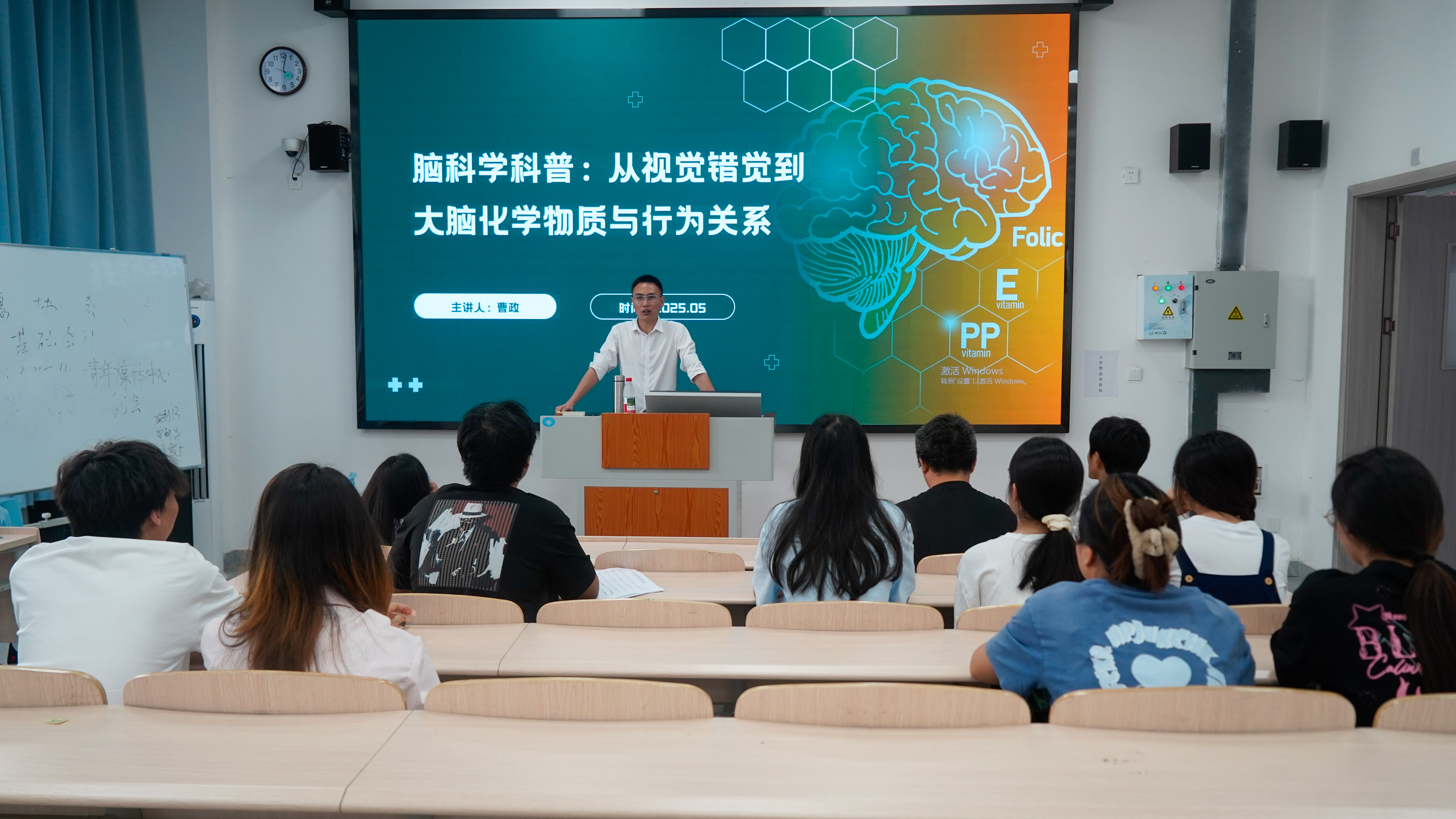 在活动讲座现场,同学们带着对脑科学的憧憬和期待进入。曹老师以深入浅出的方式,从大脑的微观结构讲起,逐步深入到脑科学的前沿研究成果。在讲解过程中,老师还结合了大量生动有趣的案例和图片,让复杂的脑科学知识变得通俗易懂。同学们听得津津有味,不时与老师进行互动交流。通过科普讲座,学院同学能够将这些脑科学知识运用到实际生活中,切实提升生活的幸福感和质量。同时也让更多人了解大脑的基本功能及如何合理用脑。