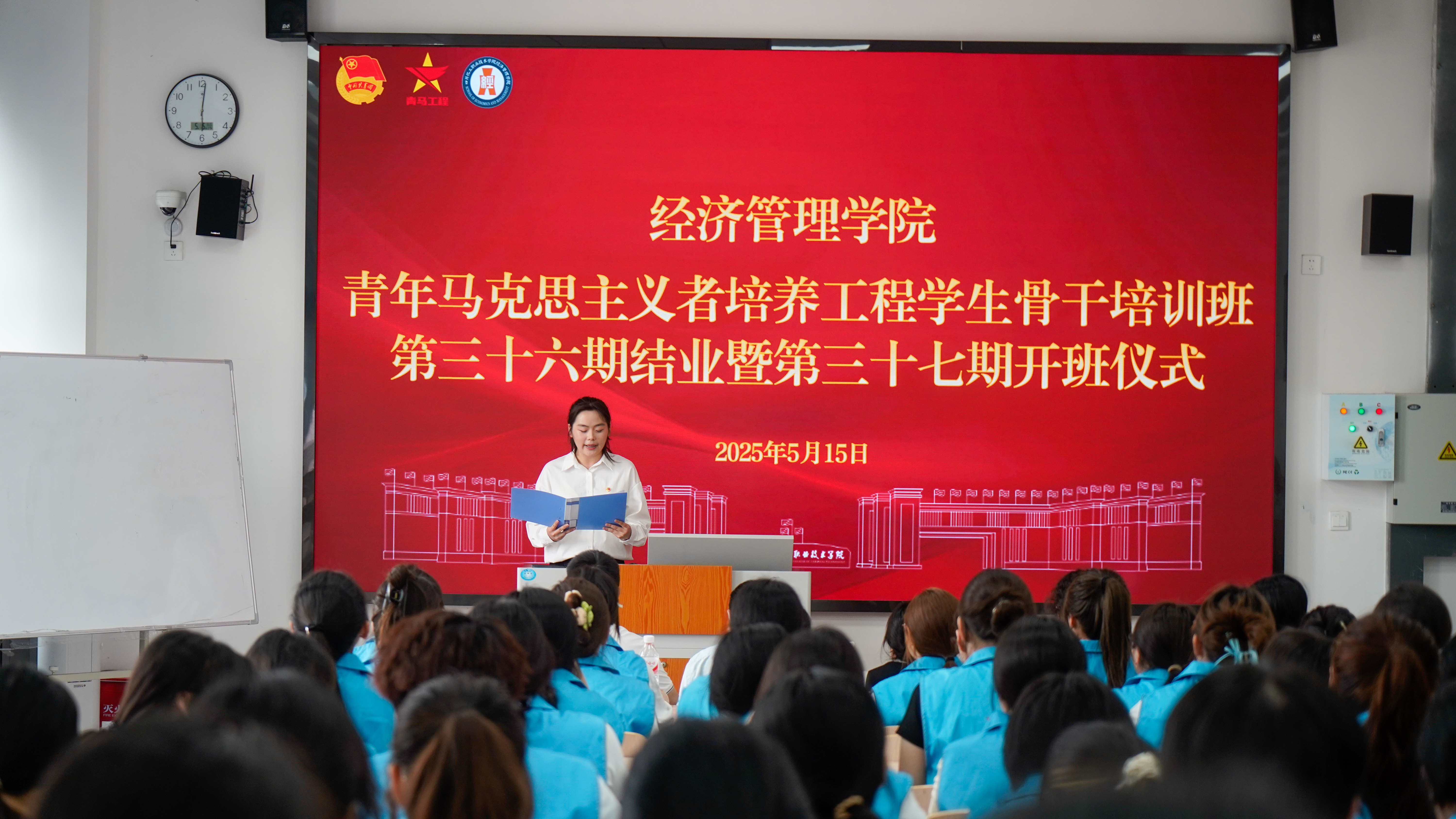 为深入贯彻落实习近平新时代中国特色社会主义思想,持续培育信仰坚定、能力突出、素质优良、作风过硬的青年大学生骨干。经济管理学院“青年马克思主义者培养工程”第三十六期结业暨第三十七期开班仪式于5月15日在醇学楼113举行。学院党总支副书记江劲、学生科长李诗诗、团总支书记李付忠、辅导员代表张玉,第三十六、三十七期“青马班”全体学员参加了本次活动。