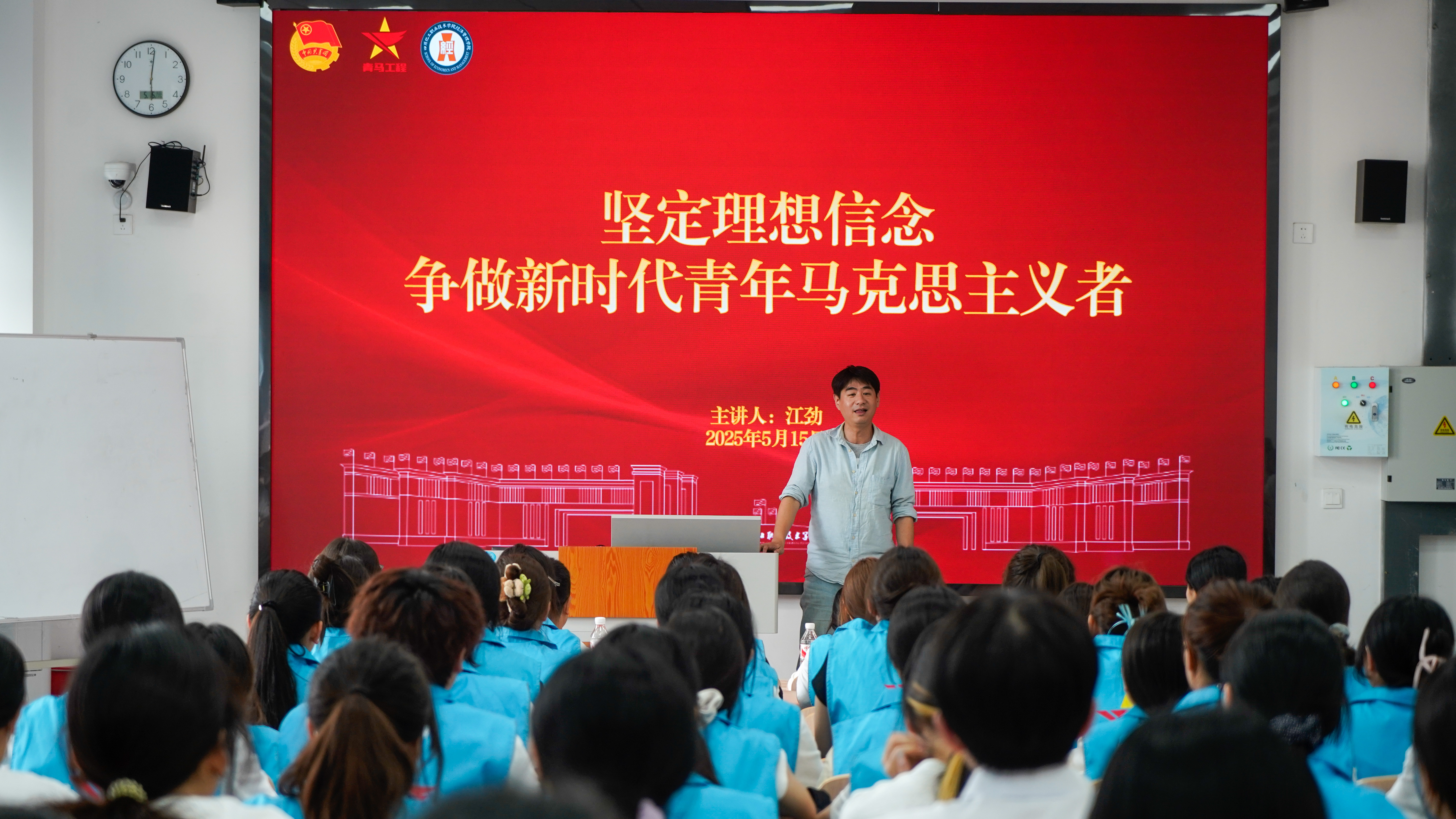 江劲宣布学院第三十期“青马班”正式开班,并以《坚定理想信念,争做新时代青年马克思主义者》为题,为全体学员讲授了开班第一课。授课内容深入浅出,既有理论高度,又贴近青年实际,强调青年学子要坚定理想信念,将理论学习与躬身实践紧密结合,勇于担当时代赋予的使命,努力成为德技并修、全面发展的新时代青年马克思主义者。