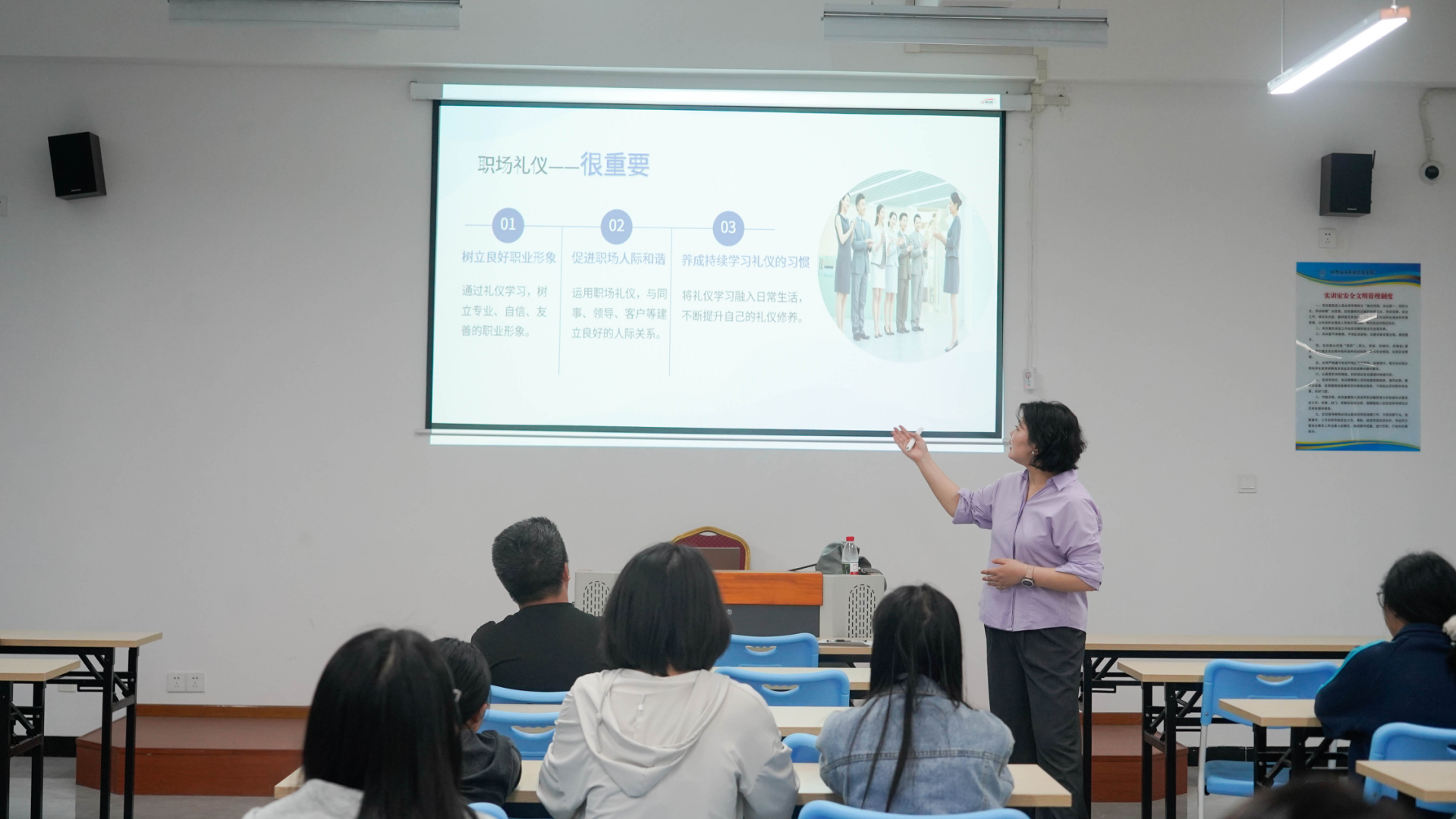 中华礼仪,源远流长;时代礼仪,历久弥新。为和同学们一起探寻传统礼仪与现代文明的融合之道,2025年5月7日下午经济管理学院学生会权益服务部在酒谷湖校区醇雅楼504开展“知行合一,仪展时代风华”主题讲座活动。本次活动特邀酒店管理与数字化运营专业陈渝副教授,为同学们进行了专业的礼仪培训。