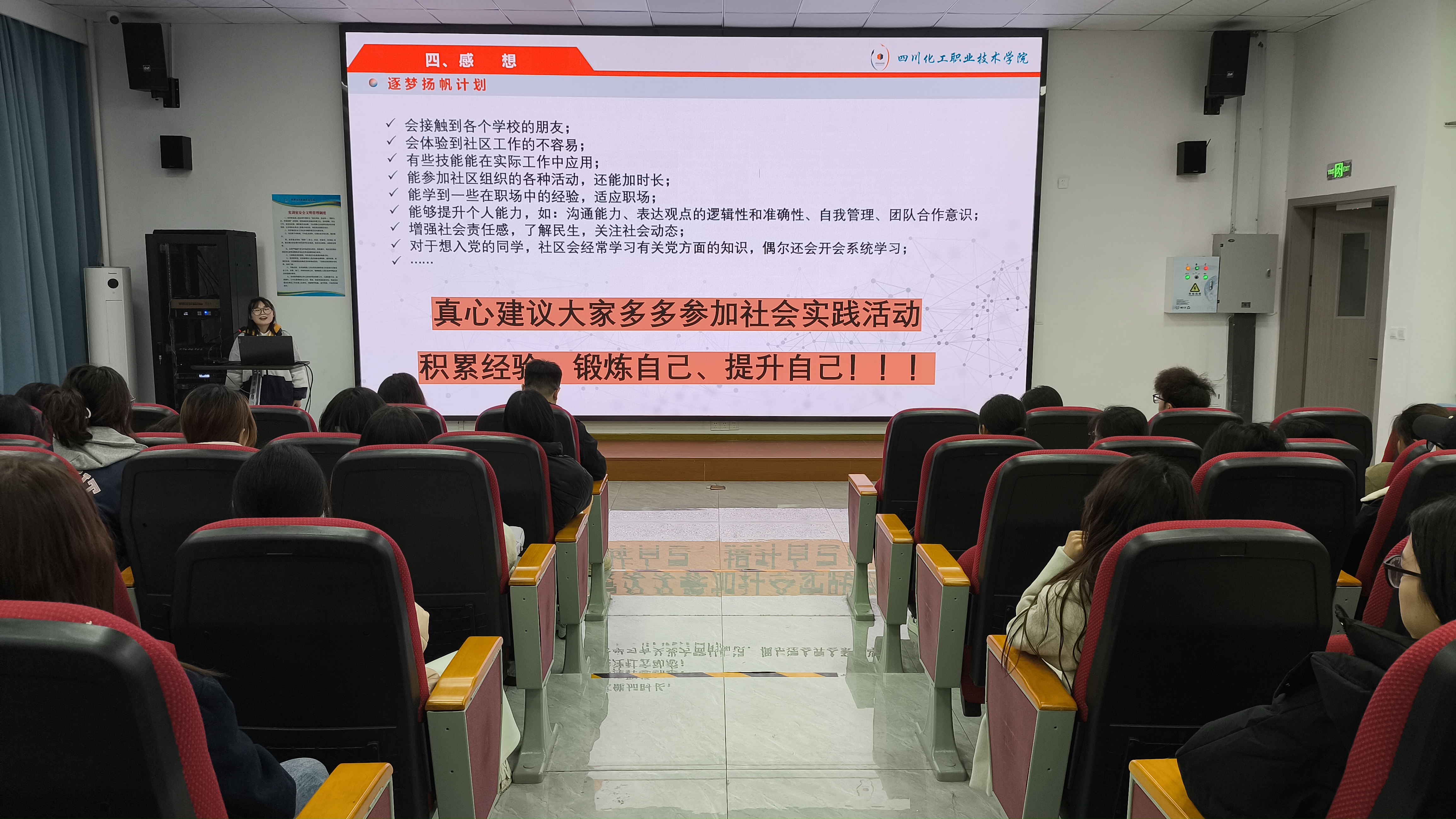 本次分享会邀请了李虹丽、李思乐、邓章婷三名参与今年暑期“逐梦扬帆计划”的同学进行个人实践经验分享。分享会上,三名同学分别从简历投递、面试应聘、实习过程、个人感想等方面充分展示了个人实践经历,既讲述了工作中遇到的困难和趣事,也展示了丰富的实践成果。在交流互动环节,同学们踊跃提问,就如何报名参加逐梦扬帆计划,怎样克服实习中的困难等问题进行了深入的交流。同时,分享者们也耐心解答,鼓励同学们学好专业知识的同时积极参与社会实践。最后,经济管理学院团总支书记李付忠老师呼吁同学们踊跃参与到“逐梦扬帆计划”大学生社会实践中,努力提高个人的综合素质能力。