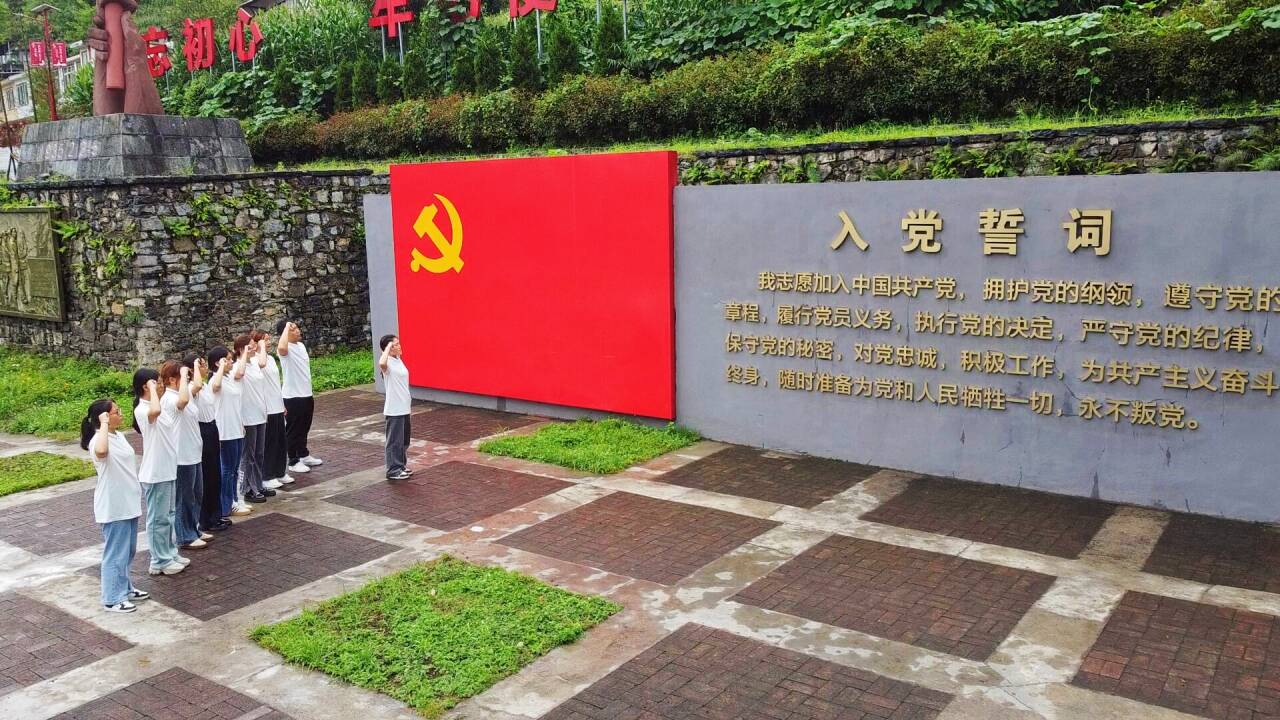 团队成员来到红军长征纪念园红色广场,在党旗下,学生党员李林春带领队员们学习入党誓词,那一刻,庄严的誓言在心中激荡,浓浓的爱国热情涌上心头。