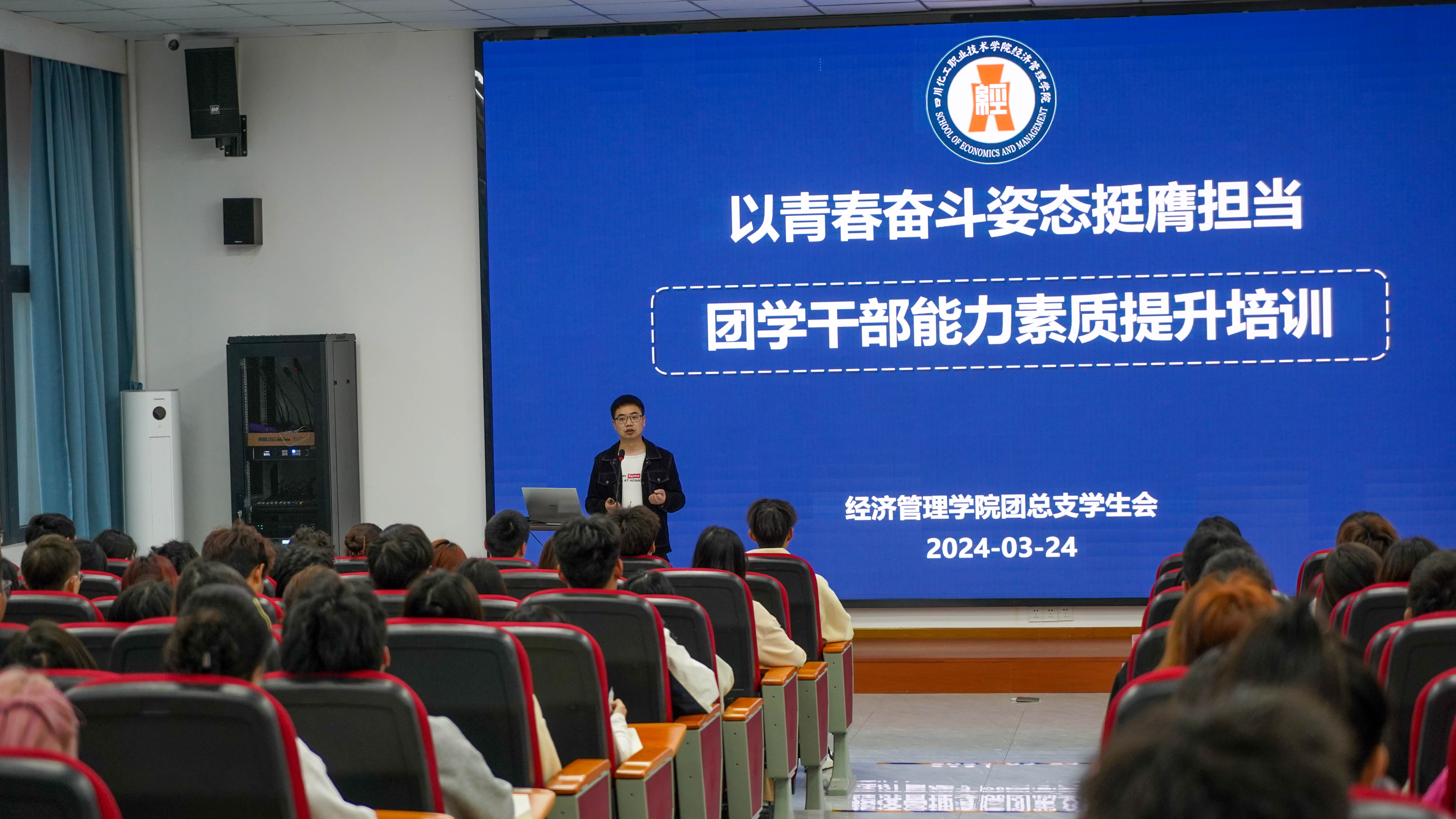 为更好地贯彻落实习近平总书记关于青年工作的重要思想,不断增强团学组织的政治性和先进性,凝聚青春奋进力量,促进团学工作提质增效,经济管理学院团总支学生会于3月24日晚开展“以青春奋斗姿态挺膺担当”专项志愿者能力素质提升培训,本次培训由学院团总支书记李付忠老师主讲,180余名专项志愿者参与培训。