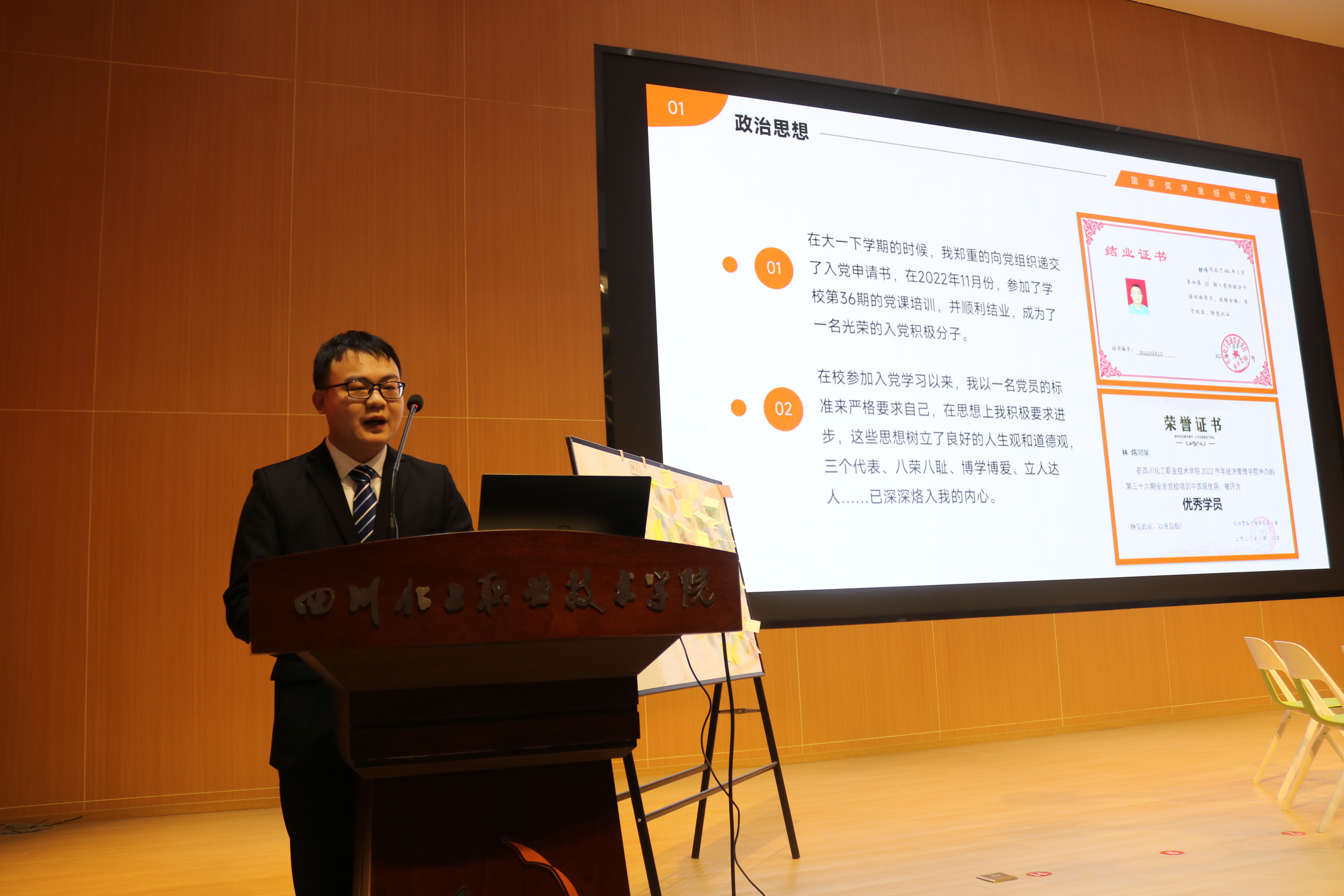 林炜同学则在分享中提到了自己学业上的宝贵经验,讲述了有关专业技能竞赛的参与渠道和高效提取竞赛信息的建议,为同学们指明了正确的学习方向,避免走弯路,提高学习效率。最后他寄语同学们:“你不能决定生命的长短,但你可以控制它的质量;你不能控制他人,但你可以掌握自己;你不能样样胜利,但你可以事事尽心”。