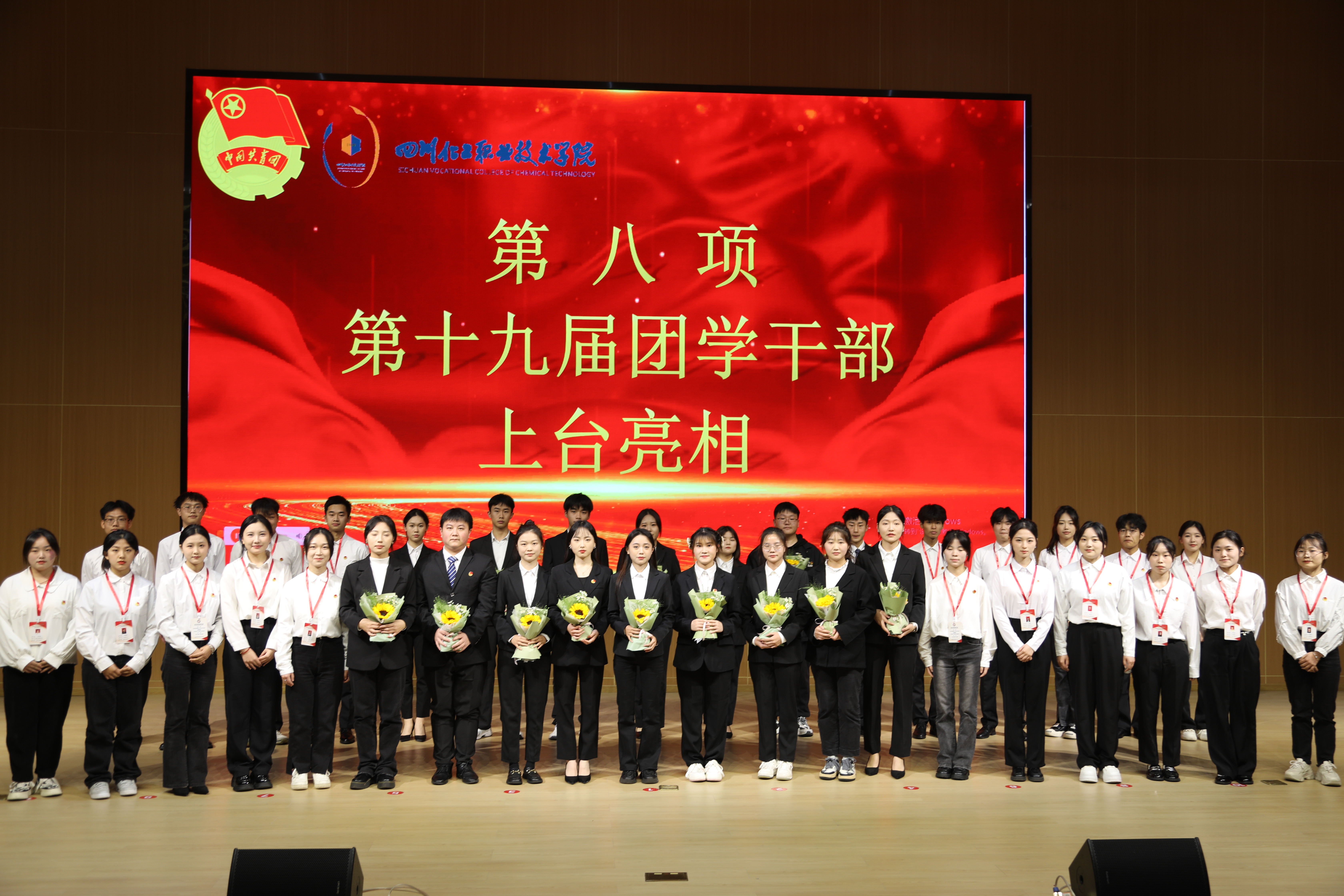 第十九届学生会代表李林春表示,将始终坚持着“全心全意为同学服务”的宗旨,严格要求自己,坚持以学生会宗旨为工作目标,在学习和行为方面起到模范带头作用。随后,学院第十九届团学干部亮相,并佩戴部牌,进行宣誓。