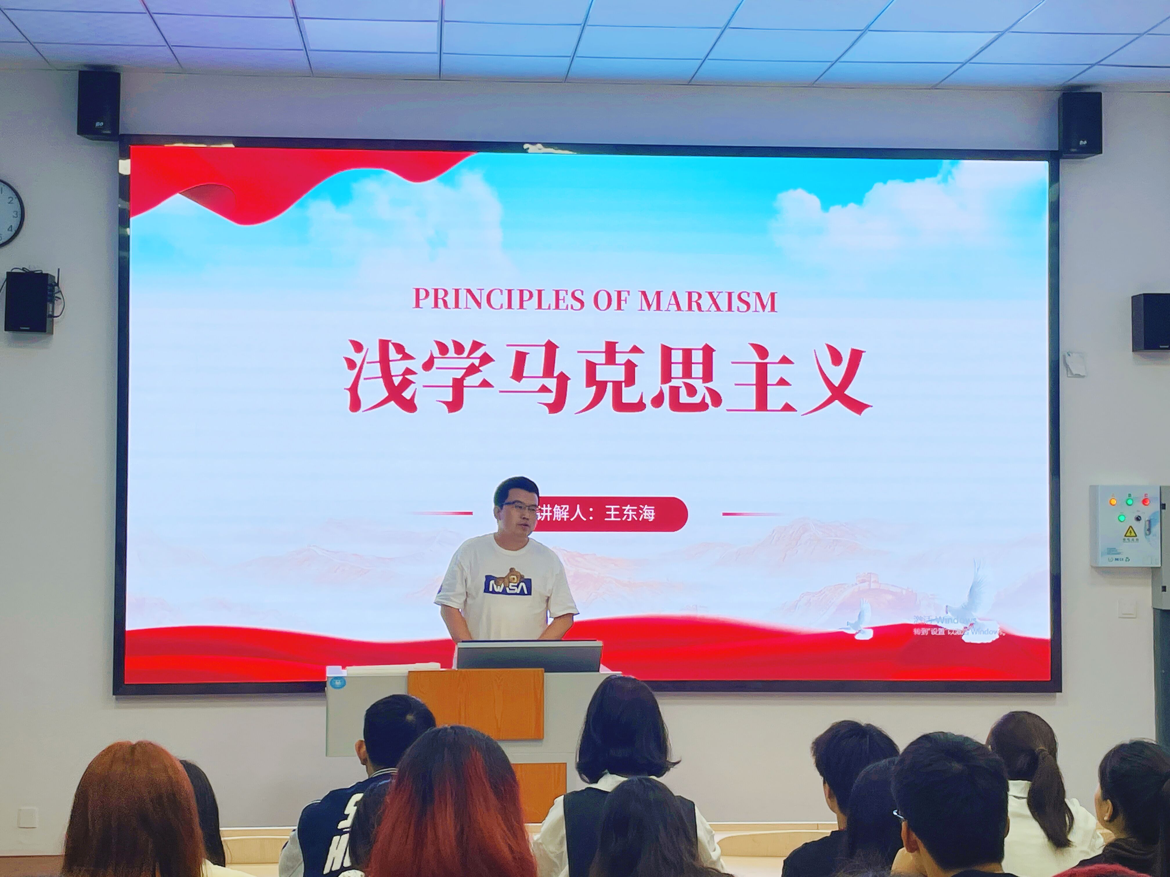为大力弘扬理论联系实际的优良学风,真正把马克思主义看家本领学到手,努力以理论学习力提升实践指导力,由学院青年辅导员王东海老师(研究方向:马克思主义中国化研究)带来“浅学马克思主义”课程,课程中提到,学习掌握马克思主义哲学是学习掌握马克思主义的首要任务,是推进马克思主义中国化时代化的必然要求。青年们需要不断深入学习马克思主义,坚持党的领导,为实现中华民族伟大复兴贡献青春力量。