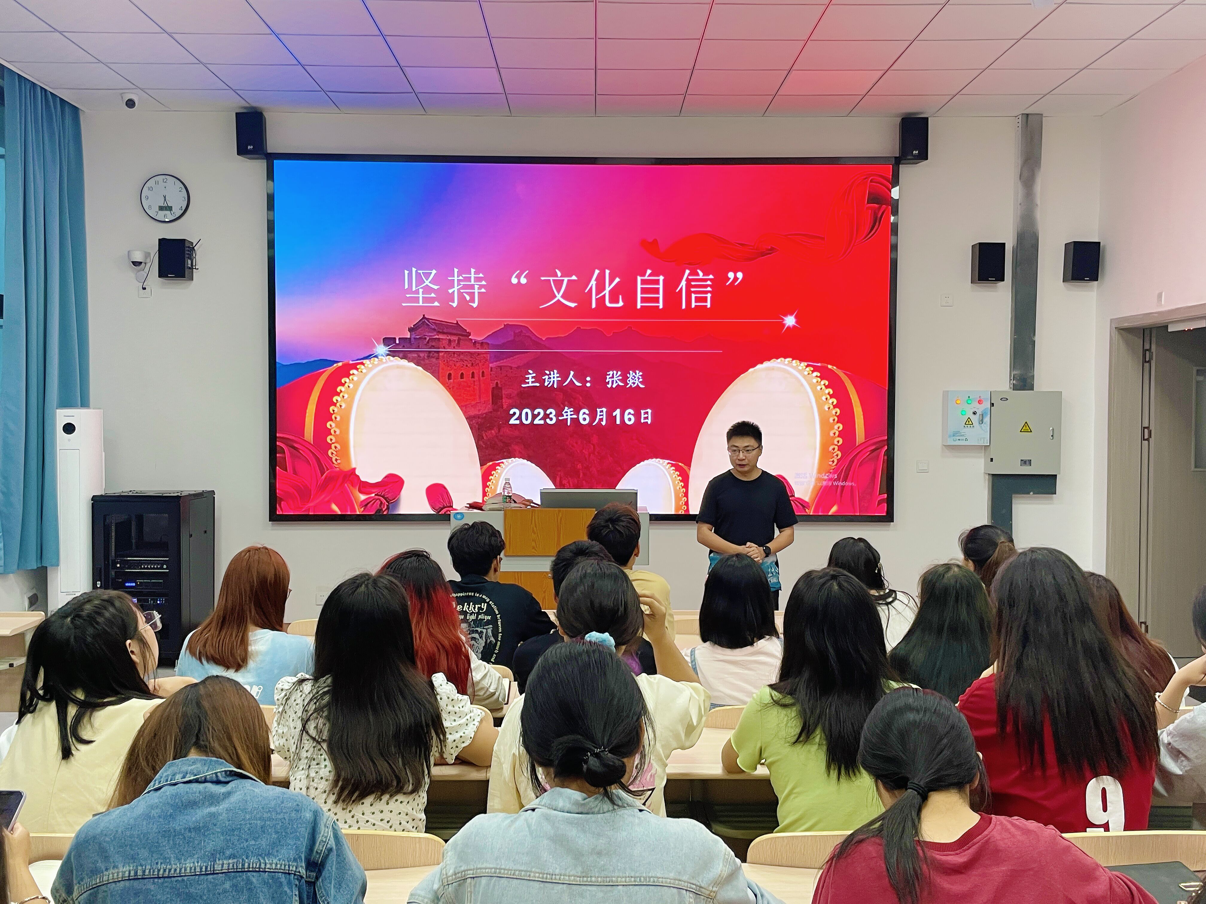 文化兴国家兴,文化强民族强。没有高度的文化自信,没有文化的繁荣兴盛,就没有中华民族伟大复兴。授课期间,学院青年辅导员张燚老师结合中国传统文化的发展历史,从多方面讲解古代文人留下的文化遗产与当代生活息息相关的案例,帮助同学们深入理解中国传统文化的博大精深。又以“习近平总书记在庆祝中国共产主义青年团成立100周年大会上的重要讲话”为引导,讲述了传统文化在新时代的重要性以及新时代的青年应当如何传承和弘扬传统文化。