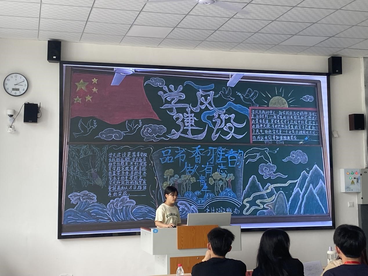 为了培养我院学生的自主学习能力,增强学生学习积极性,建立良好的学风,为大学生的成长成才营造良好的育人环境,经济管理学院团总支学生会学习竞技部在醇学楼106开展了“学风建设黑板报比赛”活动,活动邀请经济管理学院团总支书记李诗诗、李蕊君老师、杜燕老师以及学生会各部门负责人作为此次活动评委,活动参与对象为经济管理学院大一、大二各班级。
