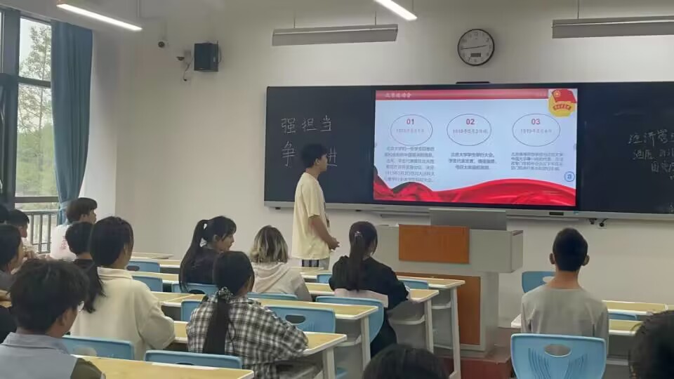 2023年5月10日,经济管理学院团总支组织部组织大一、大二班级开展“强担当,争先进”主题团课。本次团课旨在号召团员青年既要赓续红色血脉,弘扬五四精神;又要干字当头、实字为先,勇于担当、力争先进,在火热的青春实践中践行五四精神。